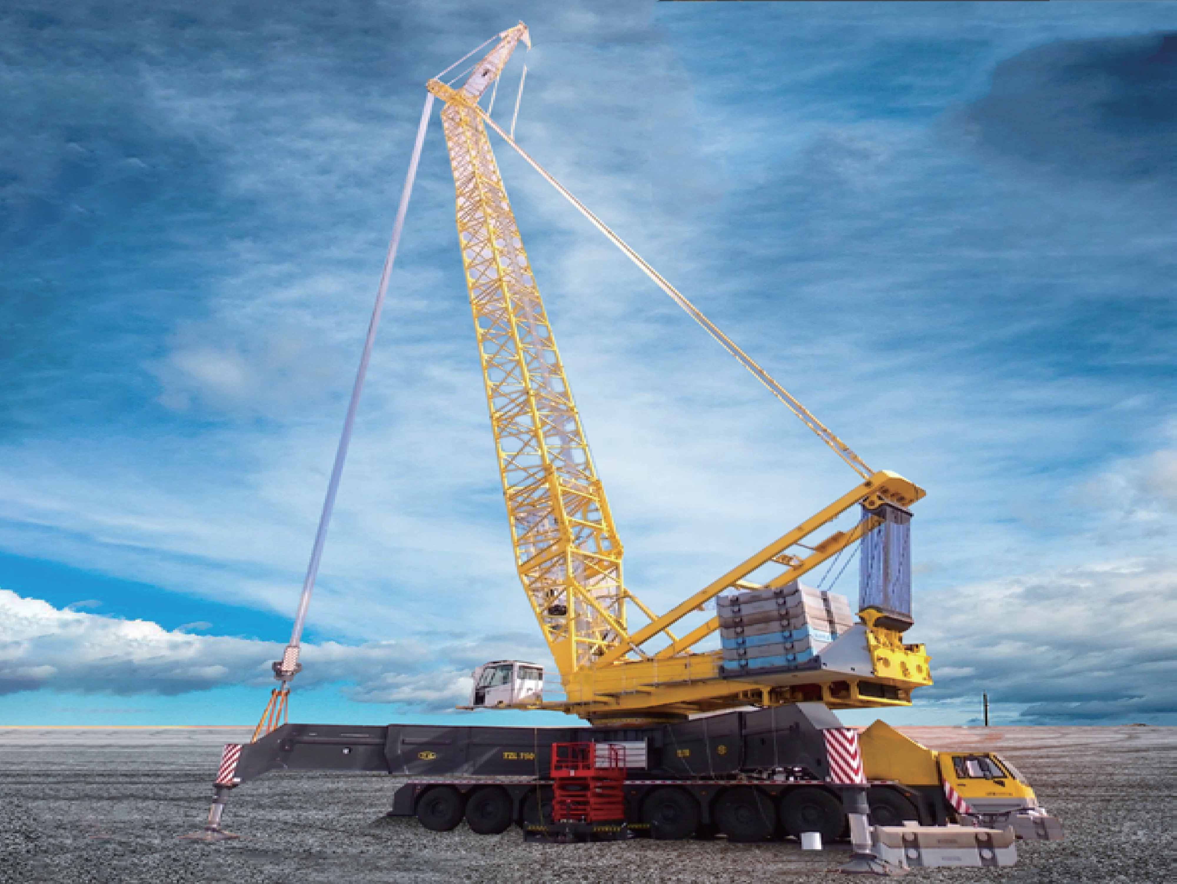 公司自主研发制造的全地面桁架臂起重机,结合全地面底盘快速转场和履带起重机超强吊装能力两种优势,特别适用于风电吊装作业,并可拓展全工况。产品规格为500t∼750t,主打产品为TZL750机型。