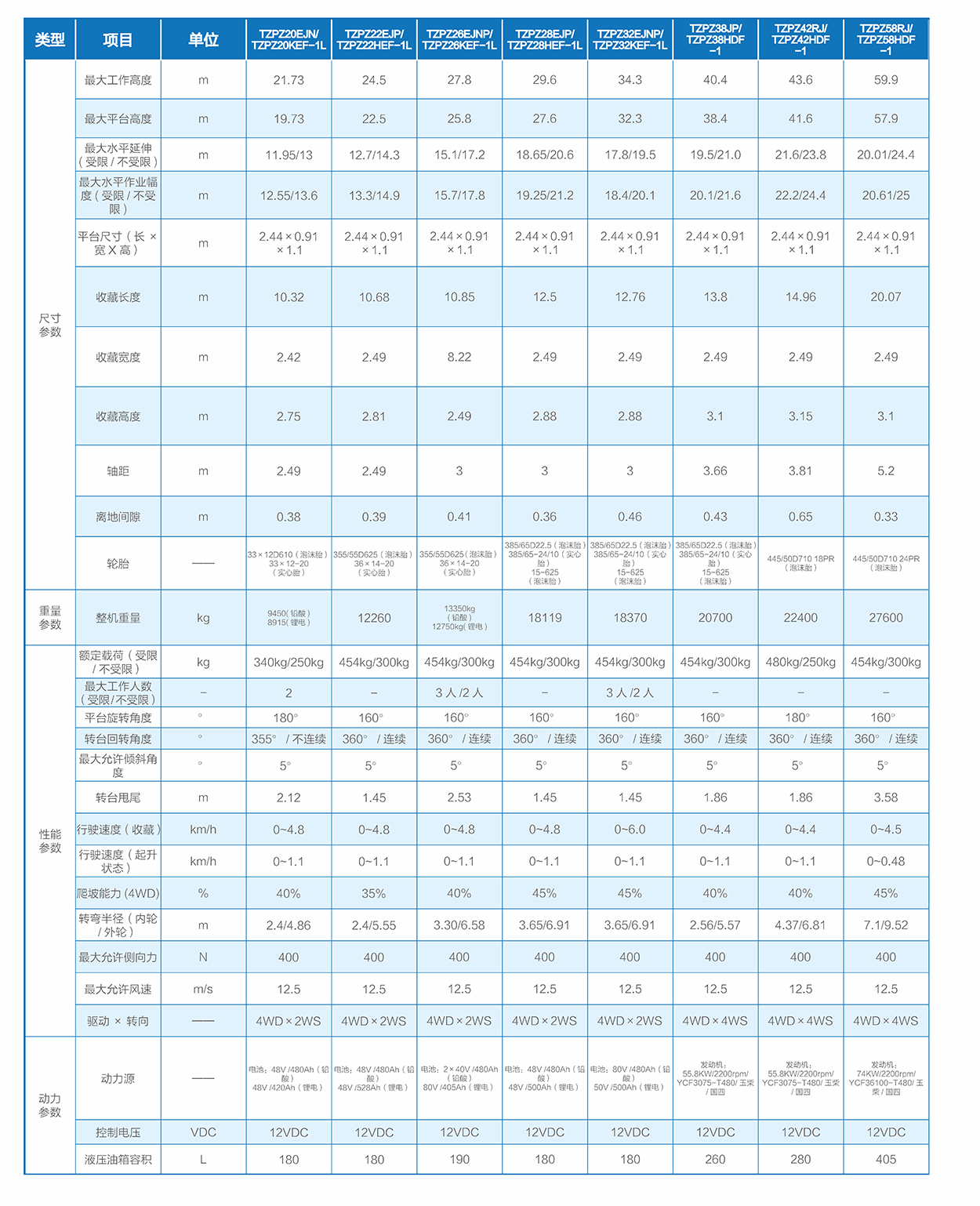 TZPZ系列直臂式高空作业平台,平台高度覆盖18-58m,柴动、电动、混动多种动力。适用场景覆盖建筑、市政、电力、园林、船舶等工程施工。
