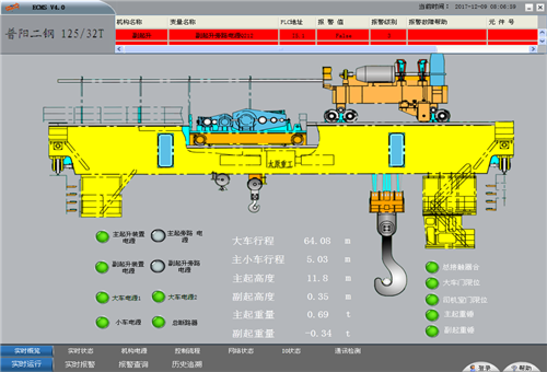 起重机安全监控管理系统,是为起重机的运行监视、数据采集、诊断分析、预警及维修而搭建的信息系统平台。可选配远程监测功能,与远程监测中心进行数据交换、具备实时状态显示、数据记录及历史查询、报警显示、事故诊断分析等功能