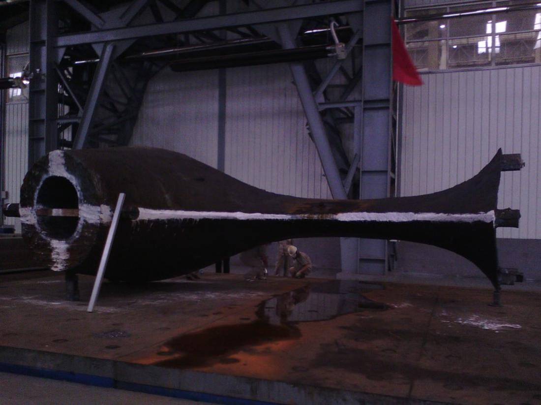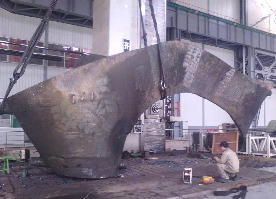 多年来,先后制造了近百件船用类铸件,主要用户有大连船厂、广船国际有限公司、江苏新时代船厂、扬子江船业集团等著名企业,同时该类铸件出口到韩国、德国、日本等国家。为中冶京城生产的32万吨原油船挂舵臂,尺寸为10500mmX6700mmX2400mm,毛重达187吨;艉球轮廓尺寸为8472mm×2810mm×4640mm,毛重达107吨。