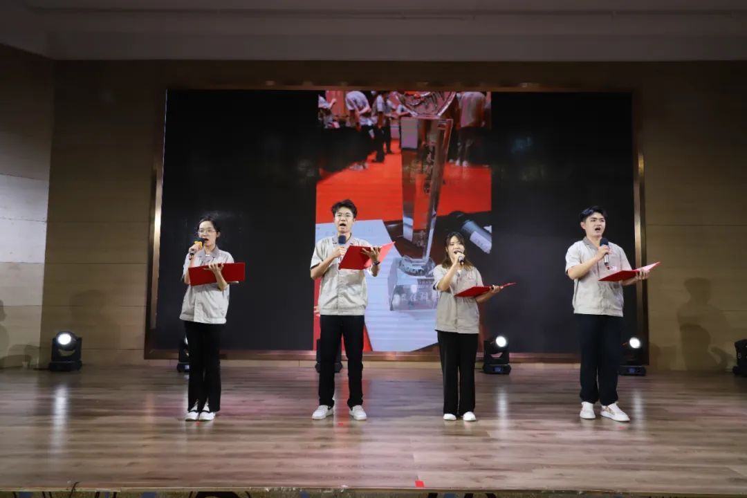 全场活动共分为矢志砥初心、激昂正青春、建功新时代三个篇章。晚会在VLOG《一起向未来》短视频中拉开了帷幕,传统艺术三句半《太重新人说太重》展现出新入职大学生以坚定的信念、过硬的本领、担当的勇气谱写太重赞歌的精气神。“让我们紧跟‘五年三步走’的战略方向,以青春之名,放飞理想,为辉煌的太重献热争光!”原创诗朗诵《以太重之名为太重争光》表述着新入职大学生的激情与梦想,激励着太重新青年用奋斗和奉献圆梦,共同绘就太重美好的明天。