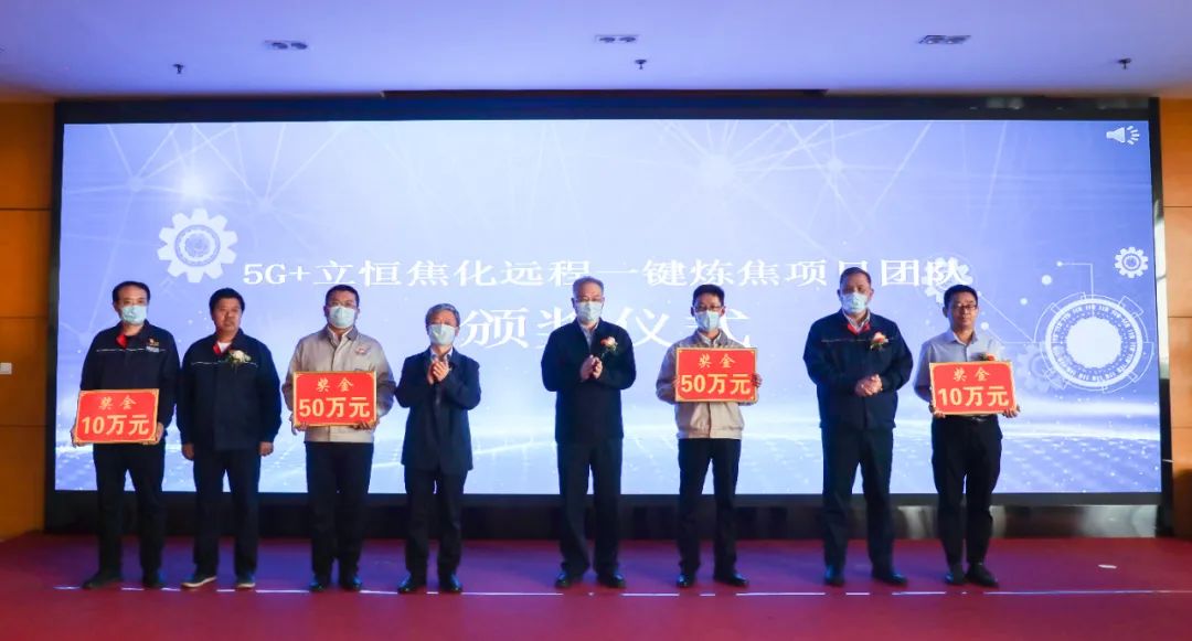 在今天的投运仪式上,韩珍堂和张天福共同为太重集团项目代表颁奖。集团公司总会计师卜彦峰发表致辞,对“一键炼焦”正式实现场景式运用表示热烈的祝贺,向克服疫情影响奋战在现场的太重项目组人员表示真诚的慰问。正是技术攻关小组通过一个月的精心研制,攻克多个技术难题,突破多项技术瓶颈,使焦炉各车辆间通过地面协调系统、无线通讯网络系统和车辆智能控制系统,实现了精准定位、联锁控制、视频监控、数据管理、安全防护、健康管理、故障诊断、应急处理、人机交互等功能,有效助推焦化领域效能提升、节能降耗和转型升级。