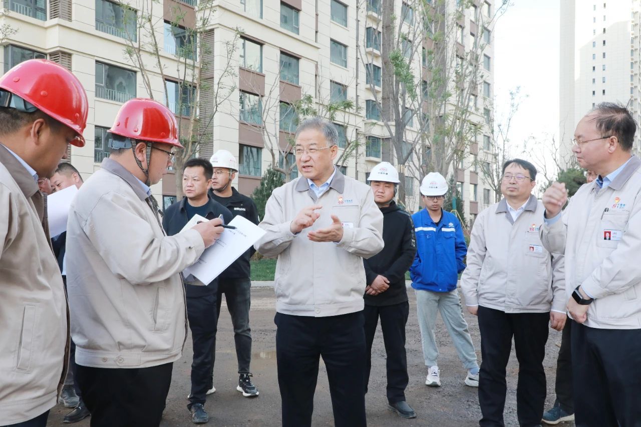 在新园区配套住宅项目现场,13栋现代化住宅楼高颜值呈现,当前园建及绿化工程进入最后收尾阶段,篮球场、足球场、网球场等运动场地正在安装围栏,幼儿园外墙装饰已完成,分户验收及修整工作也在紧张推进。韩珍堂沿着小区道路边走边看,对推进绿化建设、施工进度提出要求,他强调,要统筹协调、增派人手,倒排工作计划和时间节点,加快推进施工进度,全力以赴让职工尽早入住、安居乐业。要高效推进小区绿化建设,科学搭配、合理布局,确保各类乔木灌木高低相间、错落有致,打造高品质、高质量的绿化空间环境,增强职工群众的获得感和幸福感。要持续完善教育、生活等配套设施,加快推动前期工作,全方位满足职工日常需求,打造功能设施完善、便利居民生活的高品质社区。