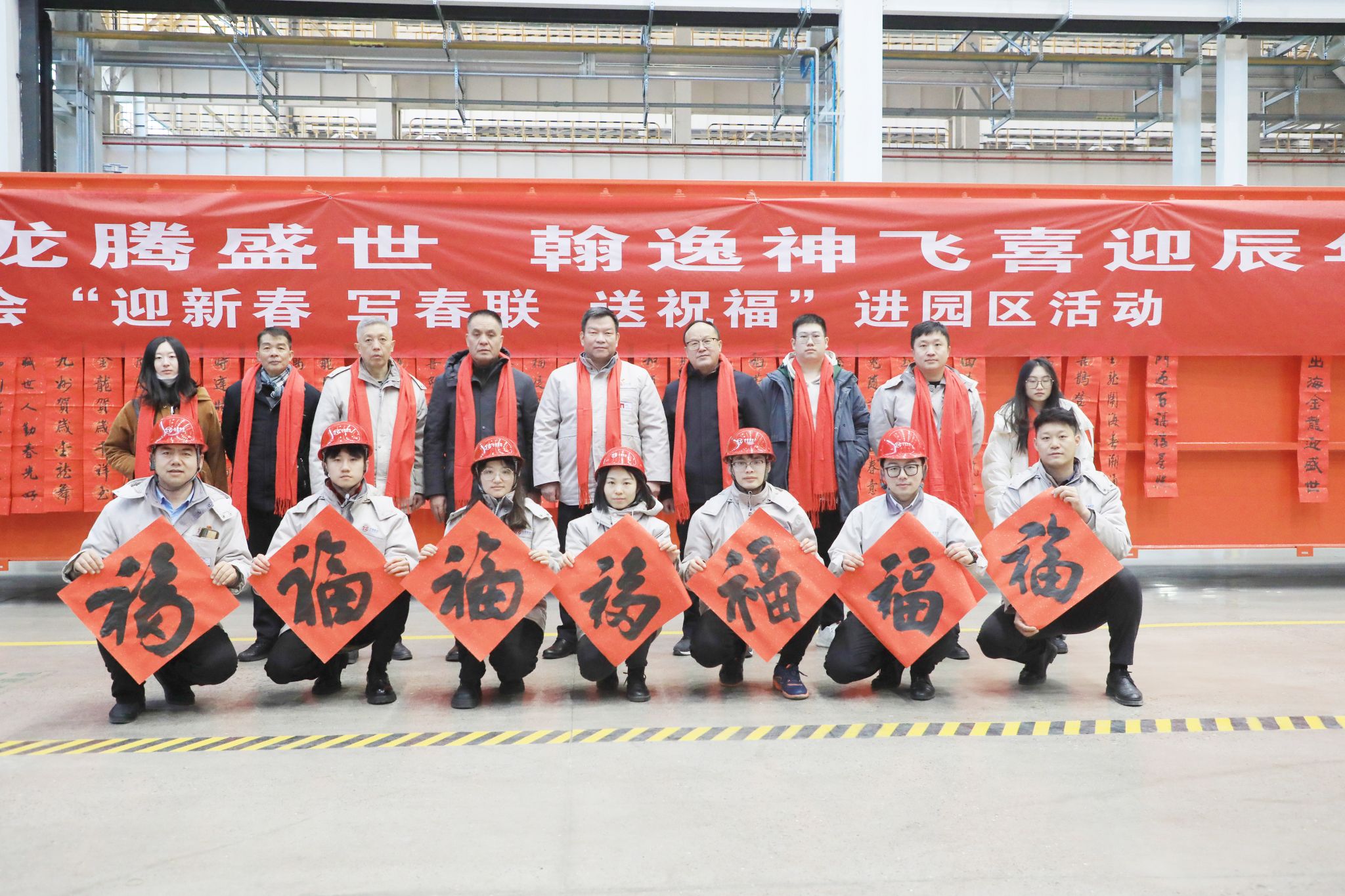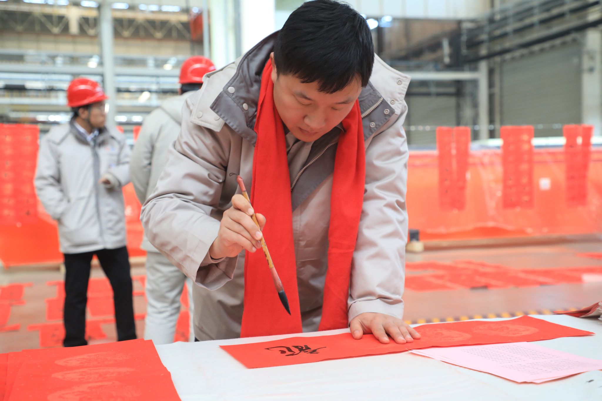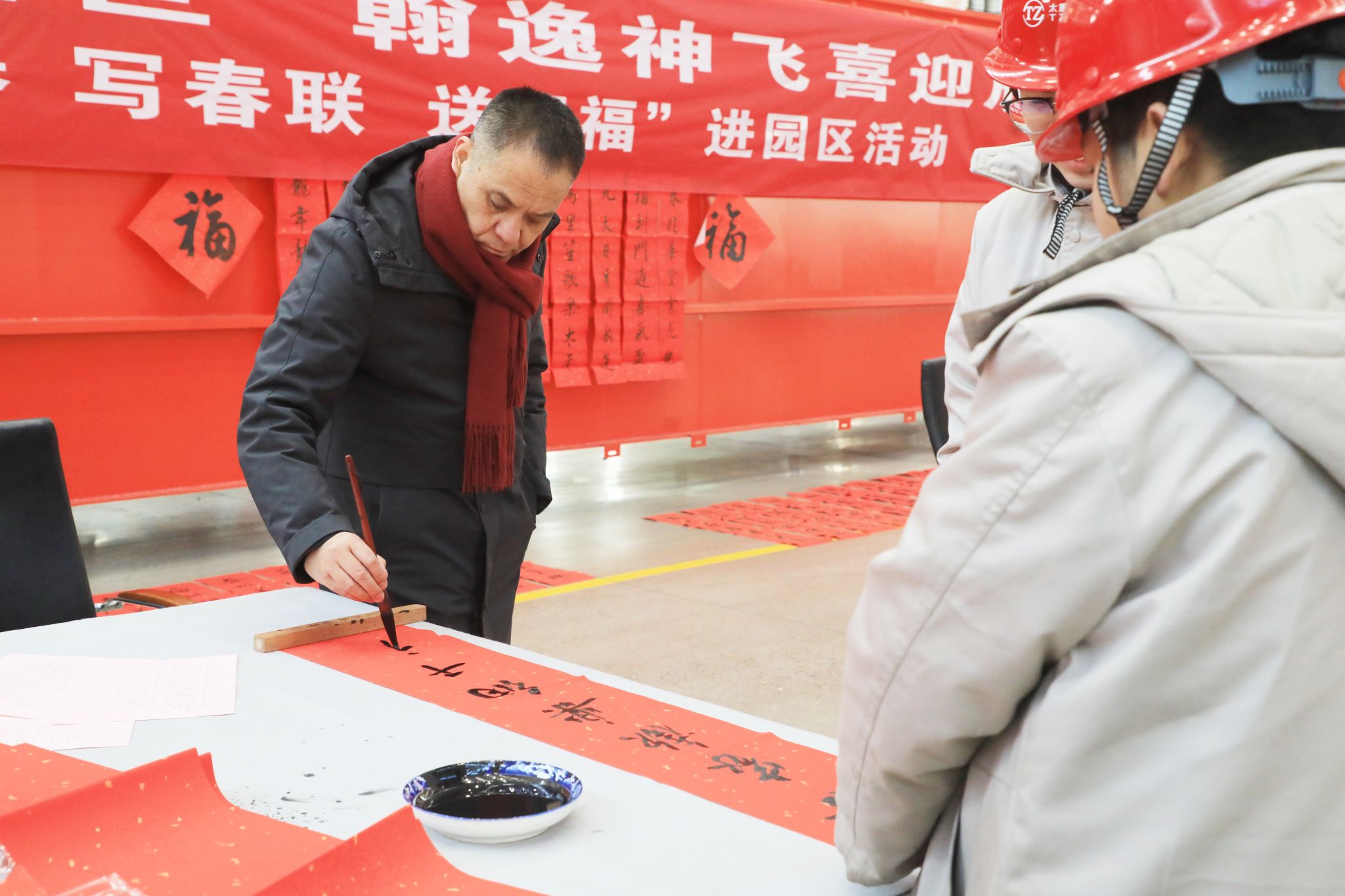为丰富职工文化生活、喜迎龙年新春,1月23日,公司工会举办“迎新春 写春联 送祝福”进园区活动,在太重智能高端装备产业园区加工装配联合厂房,来自省内的知名书法家和公司书法爱好者们齐聚一堂,为各子分公司职工义务书写春联,以这种喜庆的形式向广大干部职工送上春节的祝福。集团公司党委专职副书记、副董事长、工会主席张新伟参加活动。