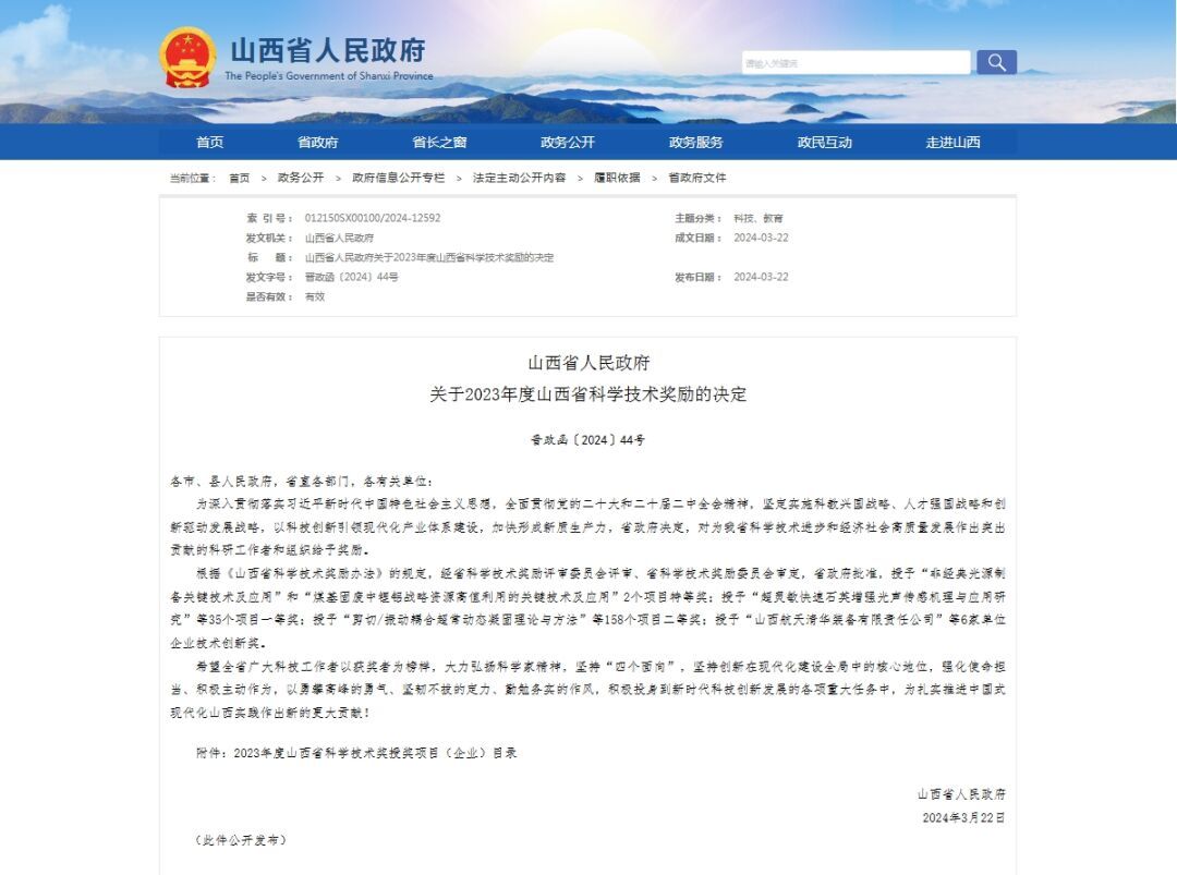 近日,山西省人民政府印发《关于2023年度山西省科学技术奖励的决定》,对促进山西省科学技术进步和经济社会发展作出突出贡献的科学技术人员和组织给予奖励。太重集团5项成果喜获山西省科学技术奖。太重向明荣获企业技术创新奖。
