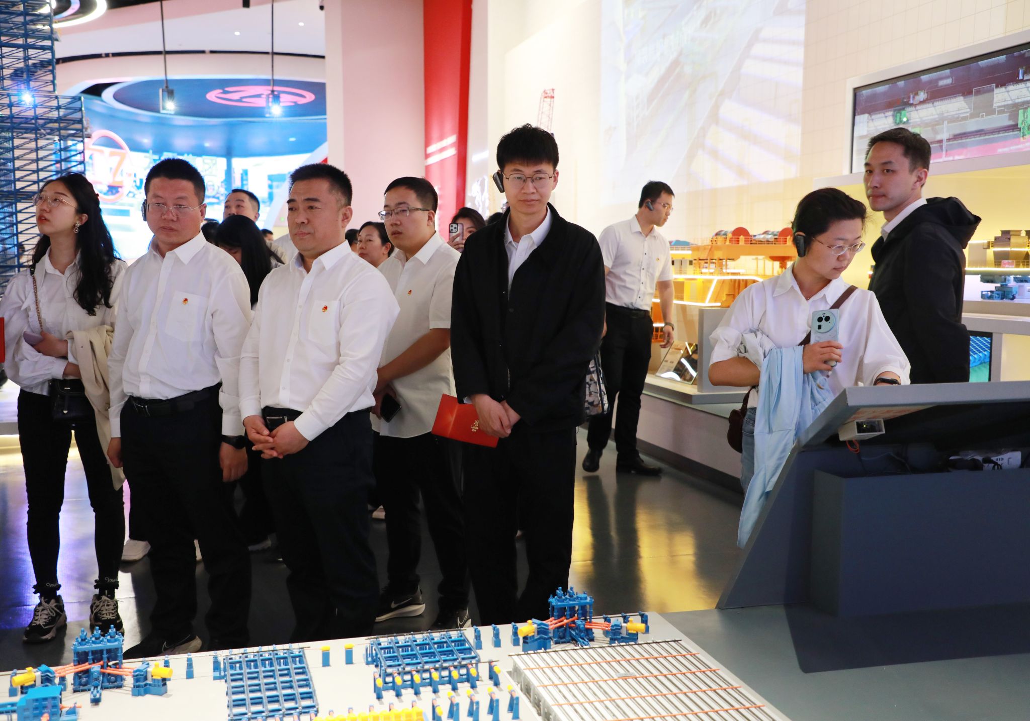 主题研学环节,团员青年走进太重集团展览中心,了解太重从创立之初到现在蓬勃发展的奋斗历程,并体验展厅内数字化的演示设备,感受太重创新活力。“我们坐的动车就是用的这种车轮呀”“太重生产的装备是当之无愧的国之重器”“原来设计一台专属定制的起重机这么快”……大家边看边听边讨论。