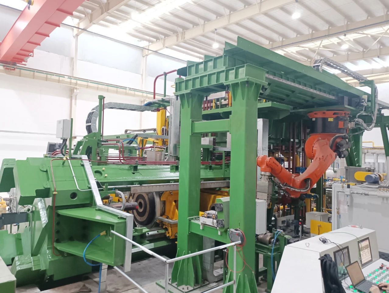 与时间赛跑,用质量说话。近日,太重滨海公司传来喜报,在工作人员通力配合、努力奋战下,28MN反向铜挤压机顺利完成热负荷试车工作。这不仅是对智能化、智慧化设备技术升级的成功实践,更是对太重服务质量、响应速度的一次重大考验。太重自主研发的28MN反向铜挤压机是用于挤压生产铜合金线材产品的设备,集自动化、智能化、高端化于一体,在节能环保、平稳运行、安全性能等方面处于行业领先水平。此台挤压机,在技术上进行了升级迭代,将设备辅助机构中的液压驱动部分,升级为伺服控制或电气驱动装置,大幅降低了辅助机构中液压系统所占比例,既能缩短非挤压时间、提高生产效率,也能保证设备的高控制精度、低故障率。同时,模具循环系统特别采用模具循环机器人,实现了模具加热、打磨、拆模、装模自动化循环。 与普通挤压机相比,反向铜挤压机辅助机构数量更多,工艺流程更为复杂,调试任务也更加繁重。考虑到用户的生产节奏,项目进入调试阶段后,公司技术中心锻压所技术人员和锻压设备分厂现场安调人员相互配合,加快调试进度,晚上测试设备运行情况、发现问题,白天调试设备、解决问题,团队齐心协力抢工期,克服种种困难将调试周期提前了7天,顺利完成设备热负荷试车。 锚定新质生产力,释放发展新动能。该项目的顺利试车是制造业与智能化的又一次深度融合,是“太重制造”向“太重智造”转型的成功之举,也是公司交给用户的一份完美答卷。未来,太重将继续坚持创新引领,提升服务质量,以新产品、新技术推动行业进步,以优质服务获得更多用户信任,勇当高质量高速度发展路上的“排头兵”。