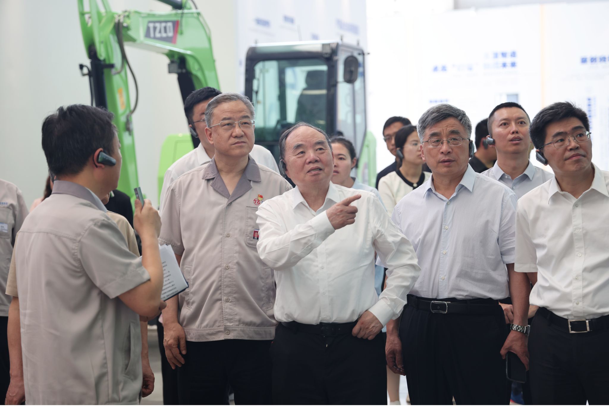 “你好太重!铲斗外翻、斗杆下降、斗杆提升、铲斗内收……”在工程机械公司展示中心,TZ36ER全电动智能遥控挖掘机通过语音操控按照指令流畅完成各项动作,吸引了专家院士们的注意,纷纷为太重的智能化产品点赞。进入车间,自动导引的AGV小车来回穿梭,机器人设备高效作业,一台台液压挖掘机正在有序生产。“什么时候开始做的电动化?”“有混合动力的吗?”“竞争优势有哪些?”……为扎实了解我省工业产业发展现状及方向,推动项目做实做细,项目组成员频频提问,韩珍堂一一作答,充分阐述了公司的产品结构、产业布局、发展理念等,带领大家深度了解这座世界单一工厂规模最大、工序最全的挖掘机智慧工厂。韩珍堂表示,在省委、省政府的关心支持下,公司聚焦制造业振兴升级,以科技创新引领产业创新,持续优化升级产业结构,构建了“一总部、多园区”协同发展新格局,围绕“高端化、智能化、绿色化、国产化”产品定位,积极打造矿山一揽子解决方案,通过差异化竞争实现弯道超车,成为全球唯一能够同时生产4—75立方米矿用挖掘机和0.8—200吨级全系列多动力液压挖掘机研发制造基地。太重将秉承极大的诚意和开放的态度助力项目研究,希望与中国工程科技发展战略山西研究院在更多领域开展务实合作,共同推动科技进步和产业升级,为促进山西省装备制造业高质量发展、推动我省新型工业化各项任务落地见效贡献力量。周济充分肯定了太重为装备制造业发展作出的贡献。他说,新型工业化将为我国实现中国式现代化提供物质基础和产业支撑,任重而道远。当前,我国智能制造技术水平已经进入国际先进行列,绿色能源技术实现了群体性的重大突破,形成了智能制造和绿色能源这两个新一轮工业革命核心技术集群。太重紧跟国家重大发展战略,高质量推动高端化、智能化、绿色化发展,带动山西装备制造业提质增效,在新时代加快推进新型工业化进程中取得了一系列新成效。这与中国工程科技发展战略山西研究院的成立初衷、与此次项目建设的目标是一致的,希望双方共同努力,推动中国式现代化山西实践迈出新步伐、取得新成效。黄庆学对太重在智能制造、科技创新等方面取得的成绩表示称赞。他说,中国工程科技发展战略山西研究院是中国工程院和山西省人民政府共建的公益性、咨询性学术机构和工程科技区域高端智库。为加快推进新型工业化山西实践,山西研究院立足省情实际,结合我省推动新型工业化建设需求,设立了“推进新型工业化山西实践和发展战略研究”重大咨询研究项目,此次调研就是其中的重要环节。作为山西省唯一的“双链主”企业,太重勇担制造强国使命,深耕制造业多个领域持续发力,高质量发展取得显著成效,与新型工业化的主题高度契合,希望今后继续与太重加强沟通对接,携手推动行业进步,促进双方共同发展。