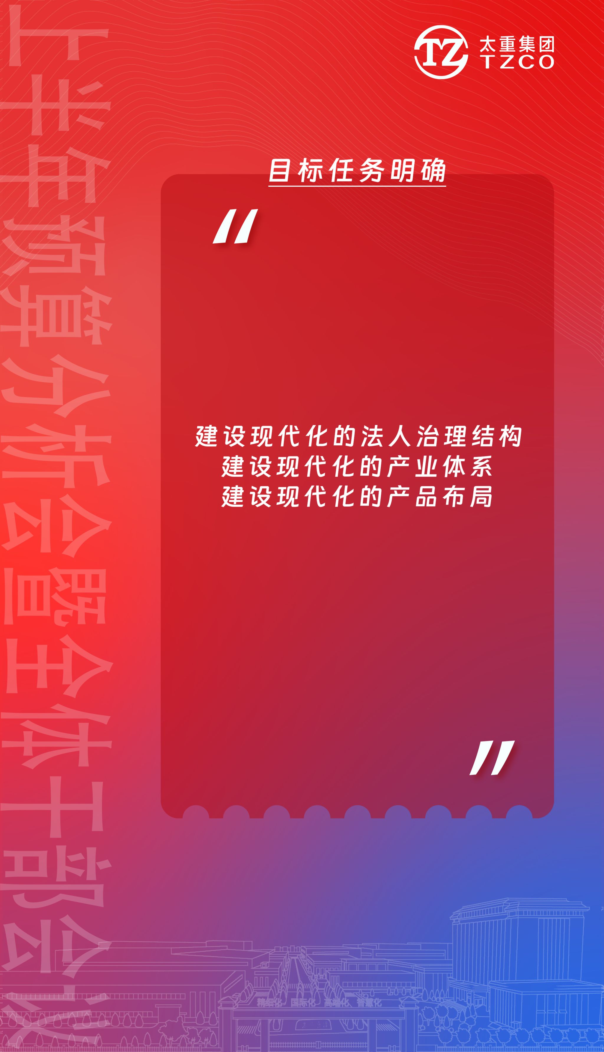 2024年7月18日,中国共产党第二十届中央委员会第三次全体会议通过《中共中央关于进一步全面深化改革 推进中国式现代化的决定》,提出“到二〇二九年中华人民共和国成立八十周年时,完成本决定提出的改革任务”。二〇三〇年,太重建厂八十周年,随着国资国企改革的持续深化,太重必将完成转型升级。