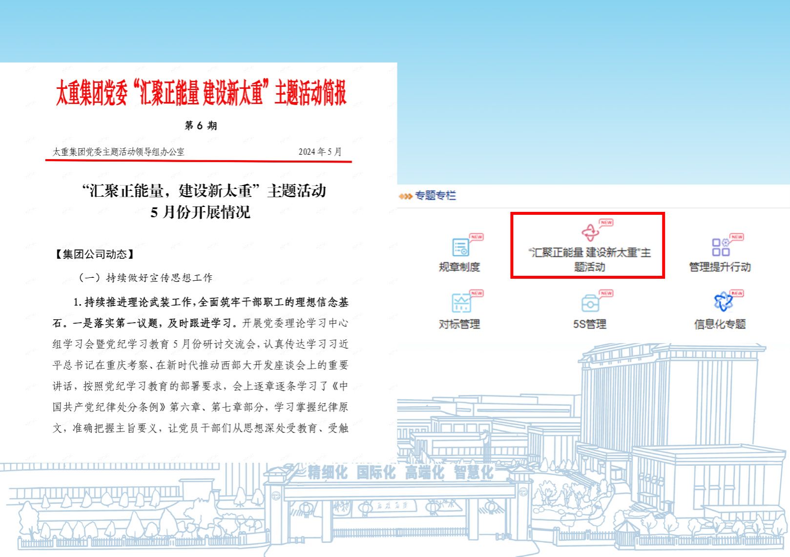 自公司全面部署“汇聚正能量 建设新太重”主题活动以来,各级党组织积极行动,开展了许多特色活动、取得丰硕成果。