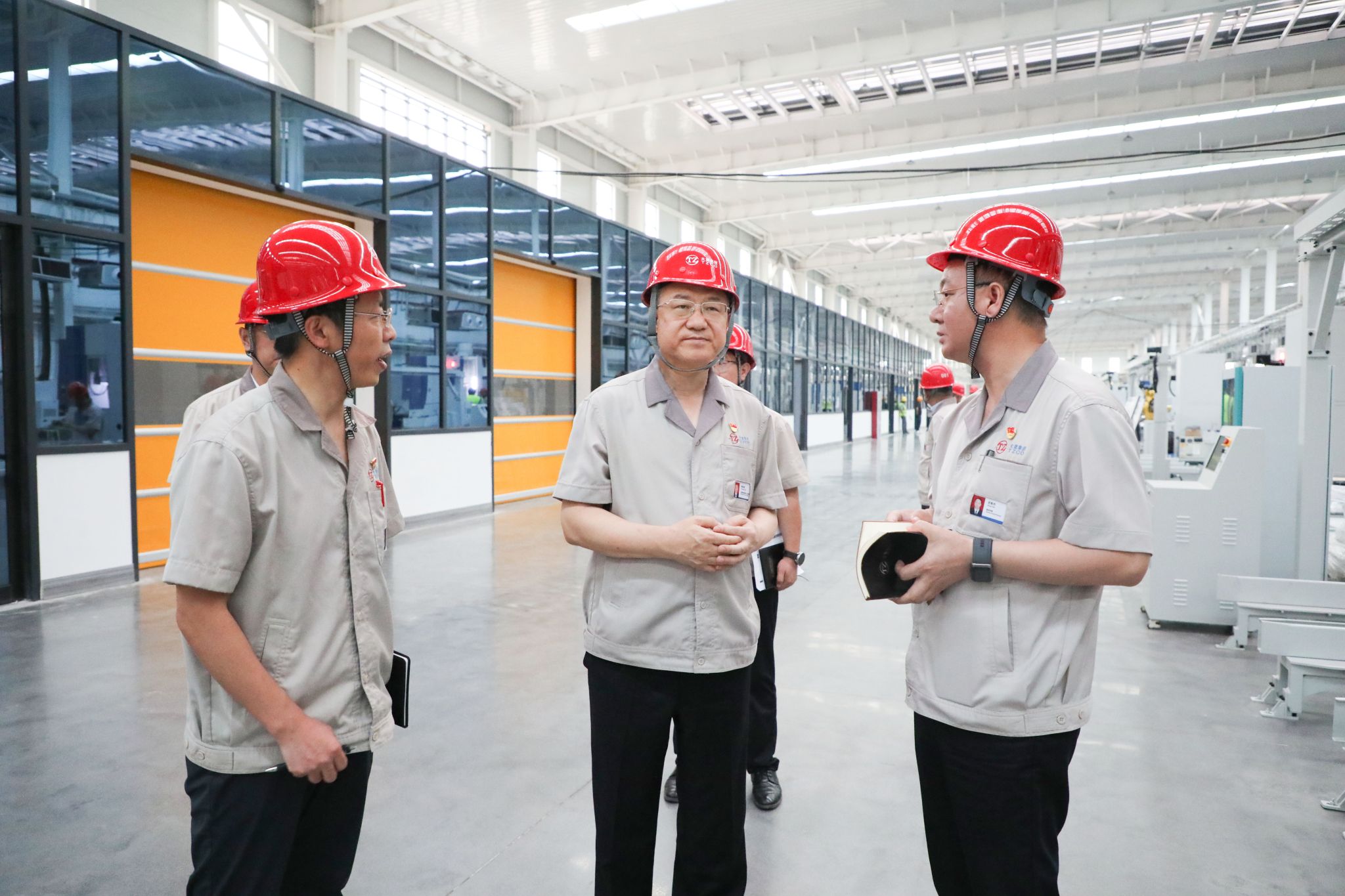 走进车间,宽敞明亮的厂房、平整光滑的地面,一台台先进设备整齐排列,现代化企业的气息扑面而来。韩珍堂边走边看,详细了解项目进度。目前,项目的工程建设已高质量完成,正在进行收尾工作;设备已到货157台套且全部安装完成,工人师傅们正在配合设备厂商进行调试,为尽快实现年内投产的任务目标全力以赴。