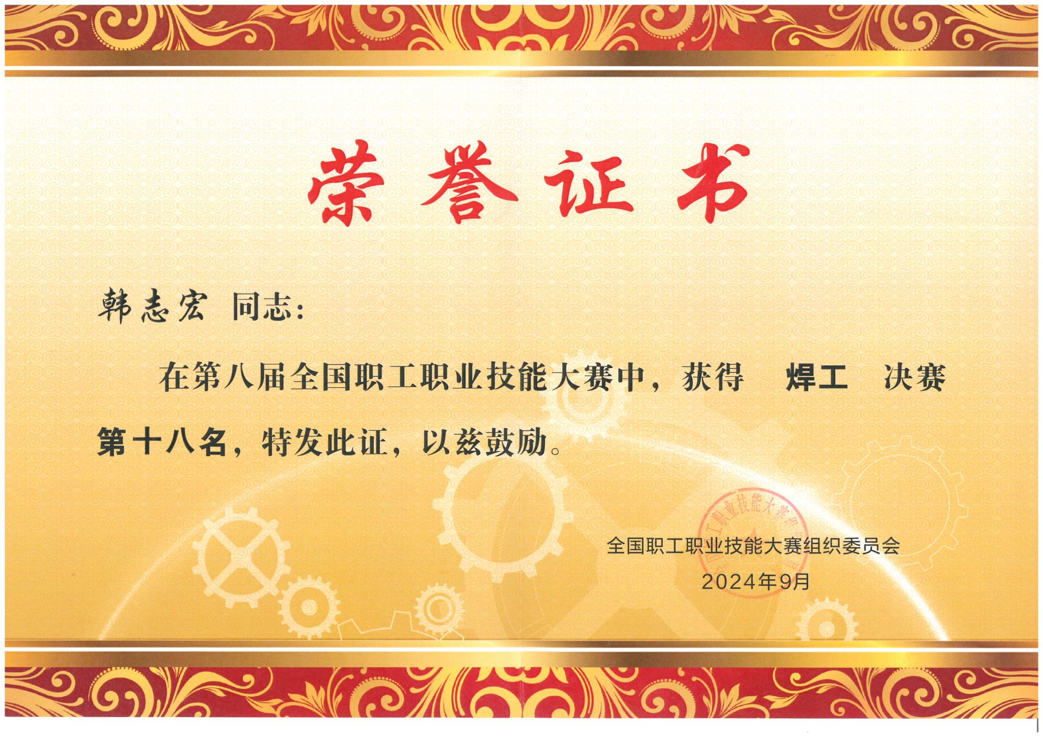 此外,公司技术中心焊接工艺研究所焊接专家樊志勤,在大赛期间积极筹备,认真做好各项服务工作,荣获“优秀指导教练”称号。