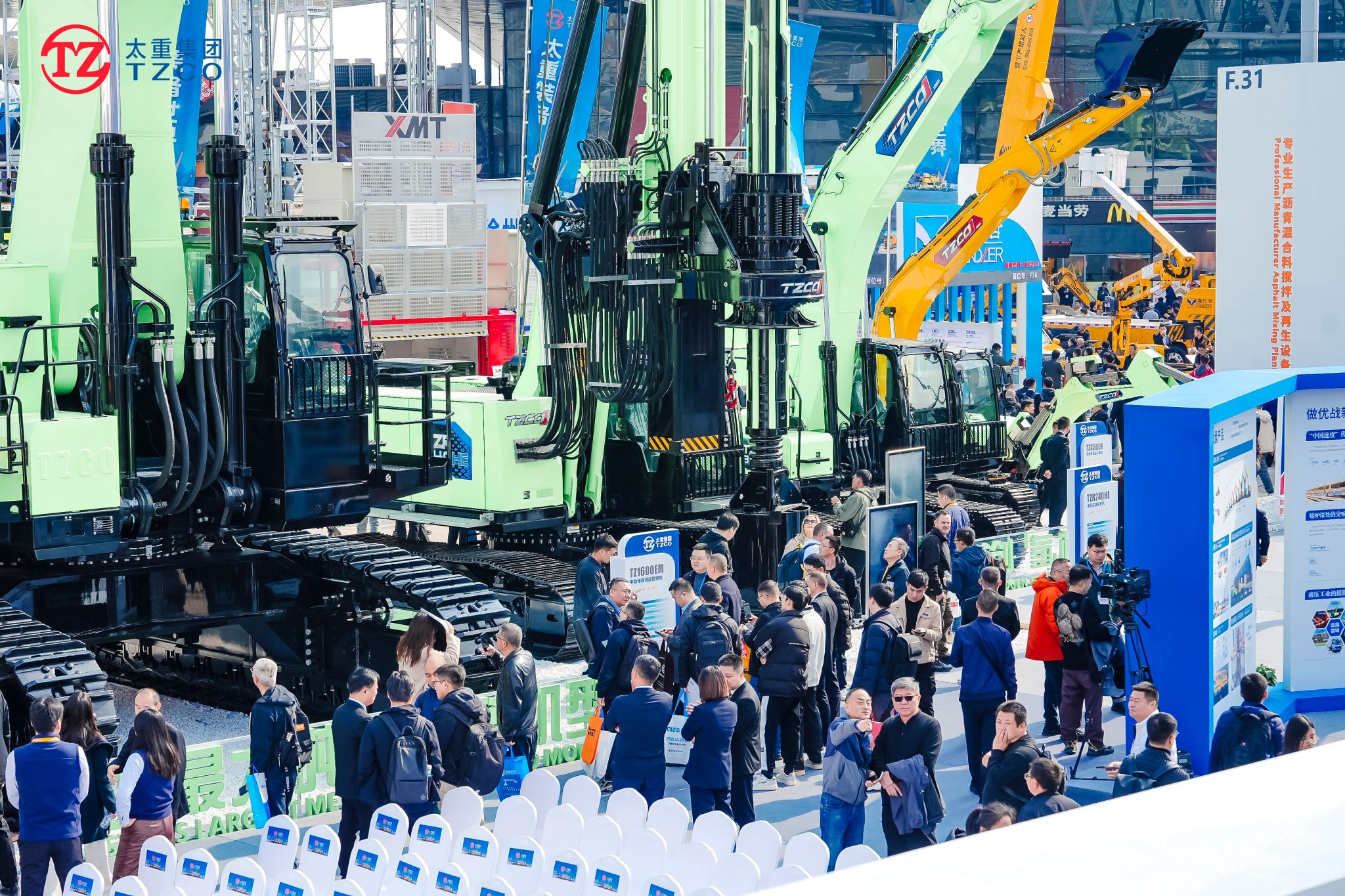 氢燃料挖掘机、全电动挖掘机、混动旋挖钻机、纯电宽体车、甲醇汽车起重机、电动平衡重叉车……太重新产品、新技术、新服务精彩纷呈,令参观者目不暇接。