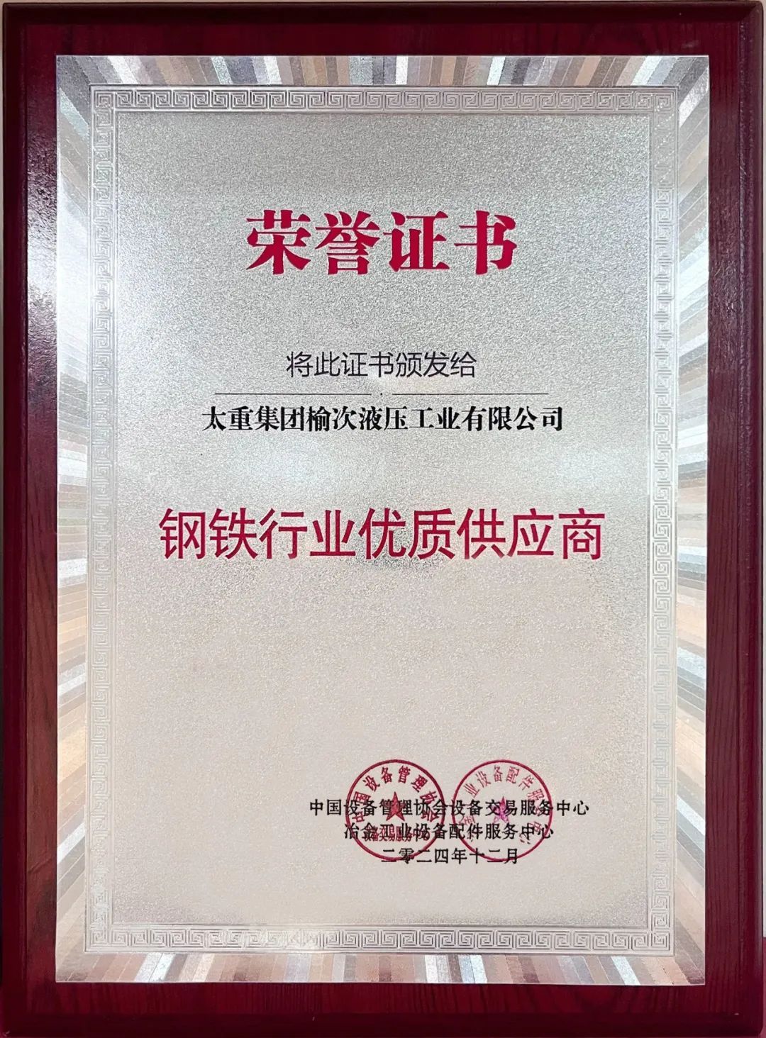 近日,在中国设备管理协会主办的钢铁设备更新推进会上,太重榆液首次获得“钢铁行业优质供应商”荣誉,这是太重榆液着力推动高质量高速度发展、加快实施创新驱动取得的又一丰硕成果。