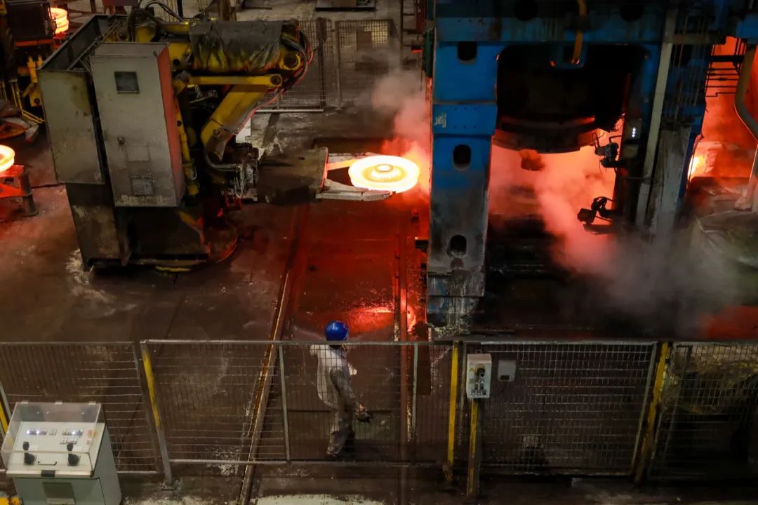 然后对切割好的钢锭进行加热。加热好之后,便可以进行锻造轧制了,通俗地说,就是塑型