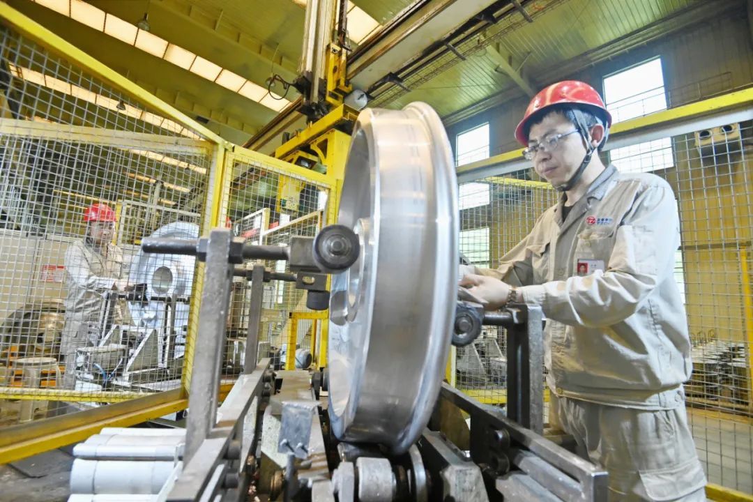 6月14日,走进太重轨道公司车轮厂二线生产车间,热浪袭来,机器轰鸣,锯切、加热、预成型、压制、轧制、冲孔、成型……叮当钢铁碰撞出激昂的旋律,企业为赶制用户订单正加足马力。太重轨道公司是全球唯一的轨道交通用车轮、车轴、齿轮箱及轮对产品的全谱系全系列全流程研发制造基地,近期,该企业持续技术创新、对标挖潜、降本增效,实现了产品质量更优、效率更高、成本更低,为全球供应着最具竞争力的轮轴产品。