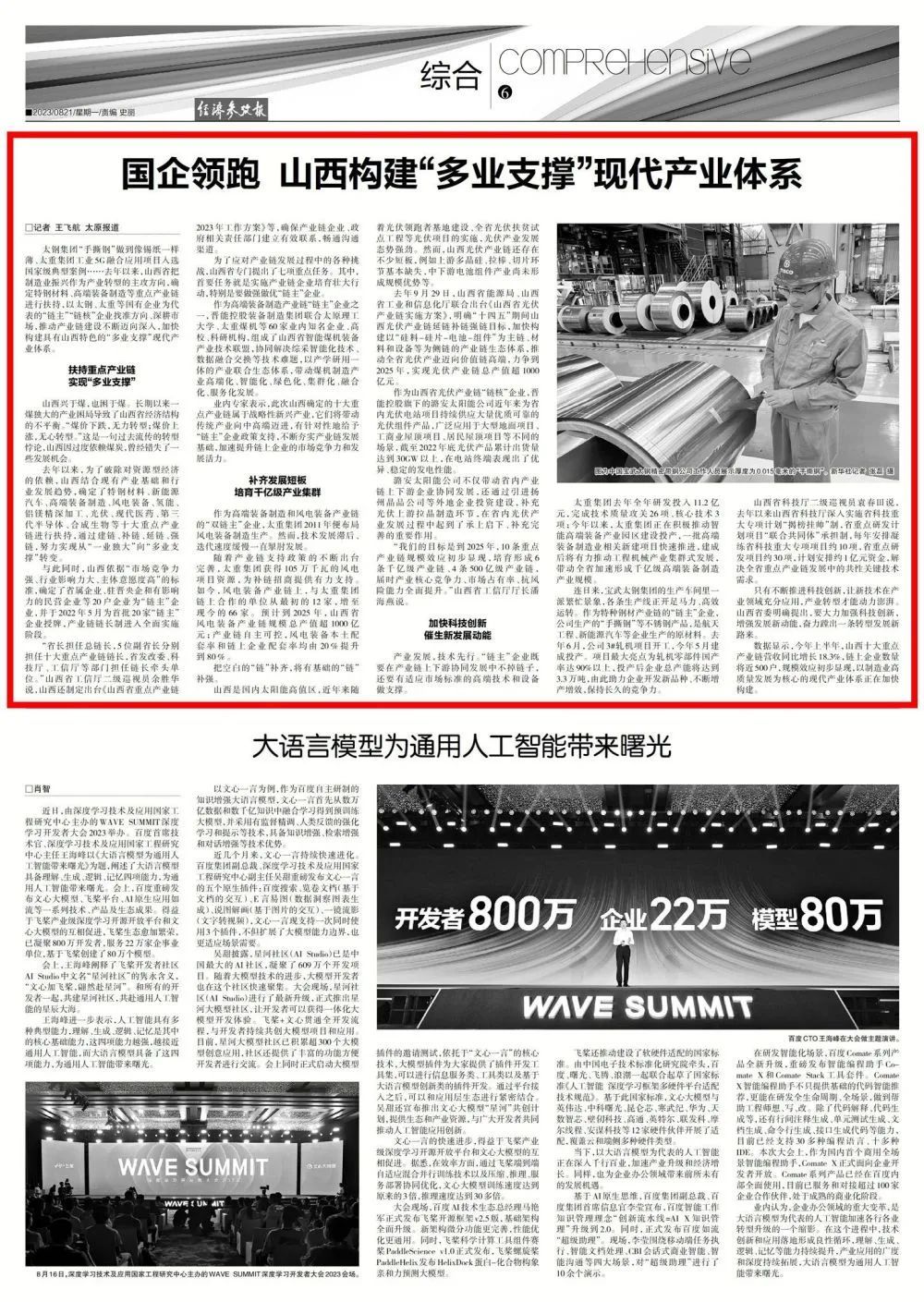 8月21日,新华社主管主办的《经济参考报》刊发《国企领跑 山西构建“多业支撑”现代产业体系》文章,深入报道太重转型发展。太重集团作为我省唯一的“双链主”企业,不断提升公司在完善产业链、优化供应链、提升价值链中的引领作用,推动链上企业高质量发展。同时,公司高度重视科技创新工作,以全国重点实验室为依托,在突破关键核心技术、促进产业转型升级的最前沿取得显著成绩,为加快构建具有山西特色的“多业支撑”现代产业体系贡献太重力量。