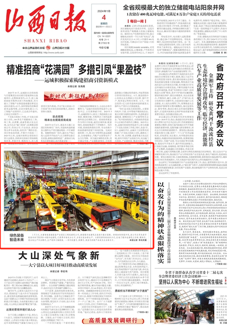 1月4日,山西日报头版以《绿色装备 智造未来》为题,重点关注山西太重工程起重机有限公司批量产品,报道了工程起重机公司工位制、模块化、流水线生产作业模式及各类新产品。工程起重机系列是公司批量化、规模化、效益化发展的标志性产品,公司结合实际应用场景和用户使用需求,持续拓展产品应用深度广度,用技术创新和贴心服务赢得用户的青睐,全面提升了企业核心竞争力和品牌影响力,跑出了转型升级的“加速度”。