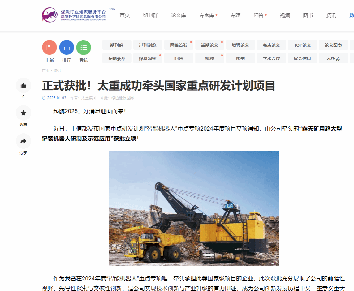 助力我国智慧矿山建设,太重在行动!
