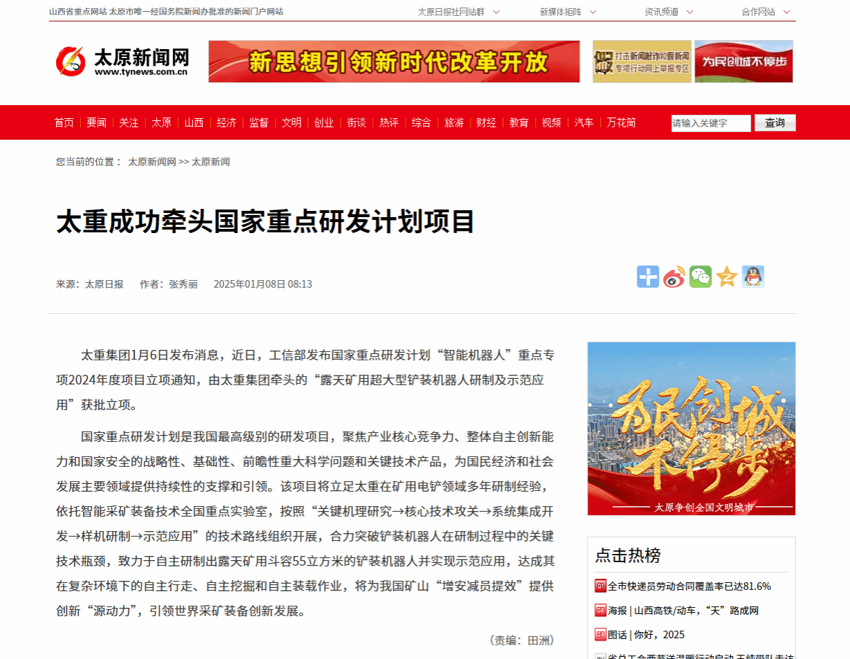 山西日报:太重加快制造业向高端化跃升