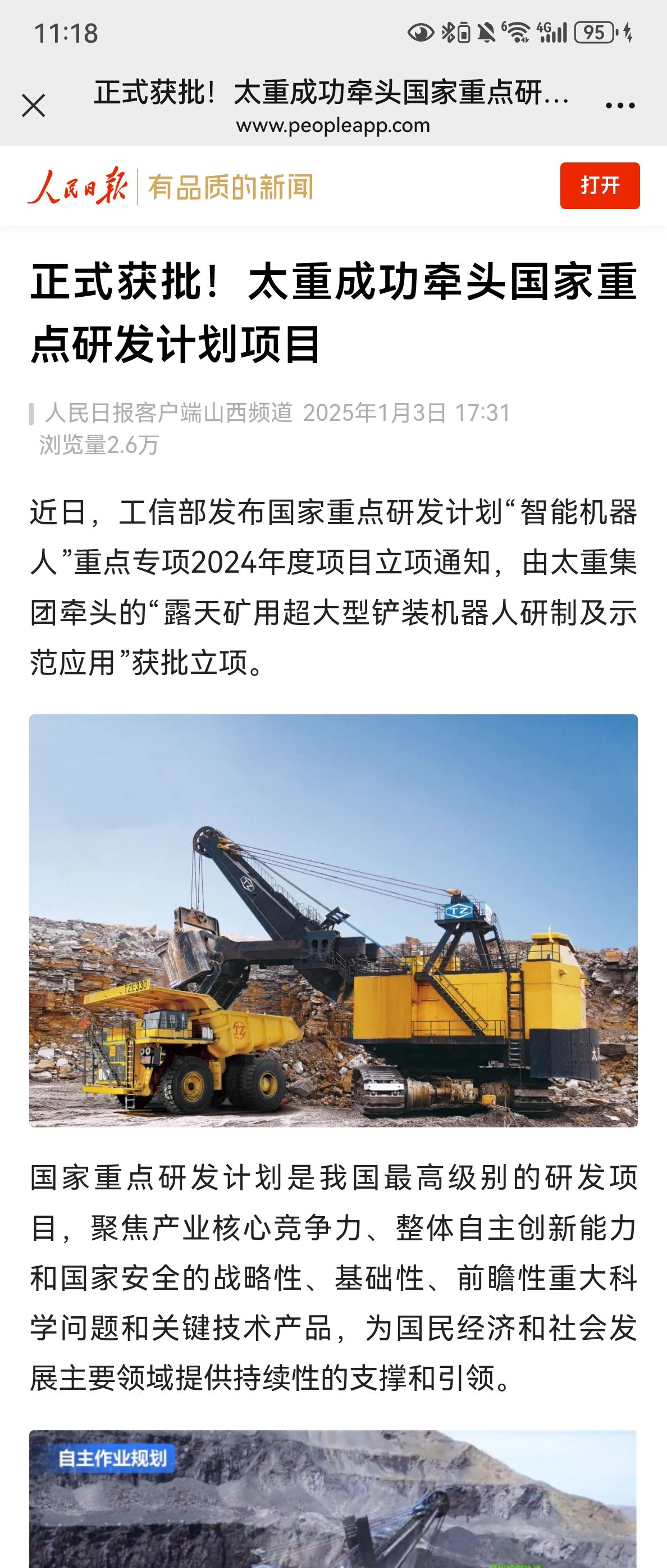 近日,2024年度国家重点研发计划立项结果公布,公司牵头的“露天矿用超大型铲装机器人研制及示范应用”获批立项!