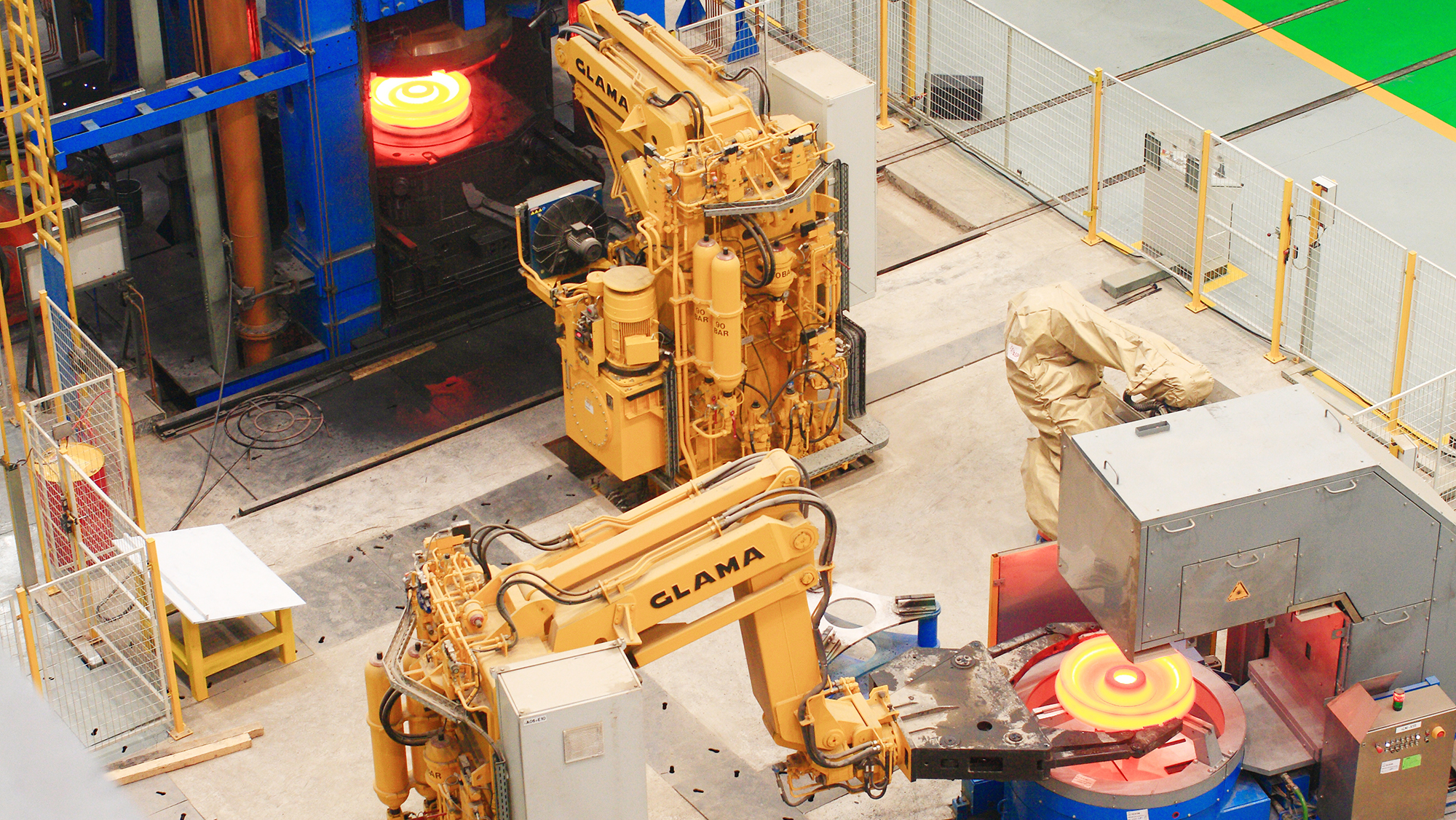 世界唯一的轨道交通用车轮、车轴、齿轮箱及轮对全谱系全系列全流程研发制造基地,52秒就能热轧出产一片车轮,代表了世界最先进水平。