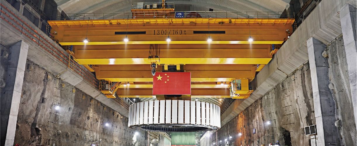 2021年6月28日,太重集团生产制造的1300吨桥式起重机,顺利完成了三峡白鹤滩水电站全球首台百万千瓦水电机组吊装任务。